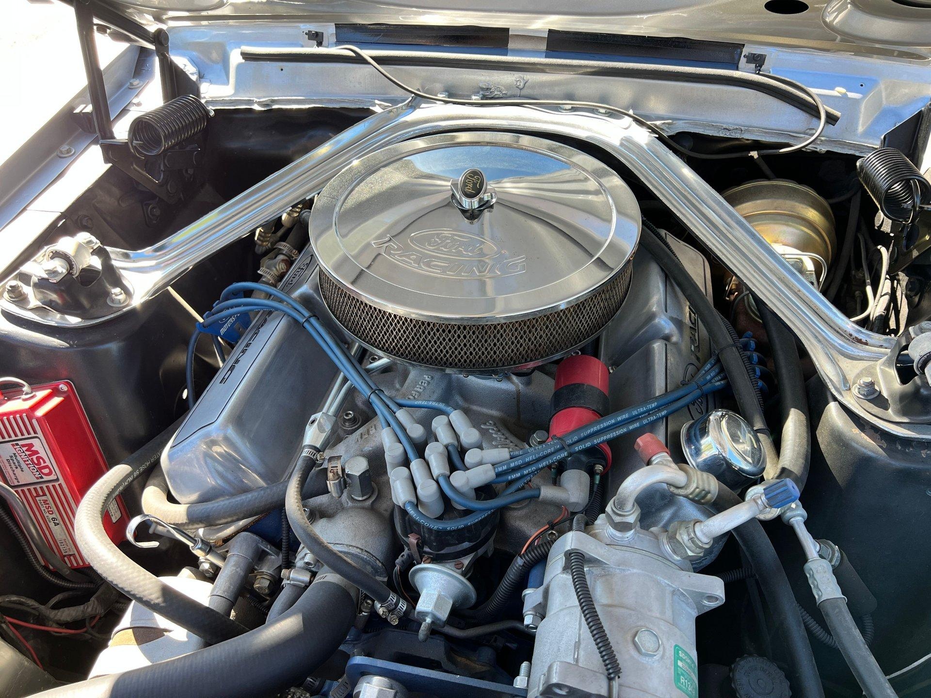 351 Windsor 400 HP with Clay Smith cam, forged piston, roller rockers, screw in studs, balanced and blue printed, performer high-rise intake manifold, Shorty headers, 2.5 inch custom built exhaust with flow masters mufflers. Holley 650CFM 4 BBL Dual pump Carburetor.
